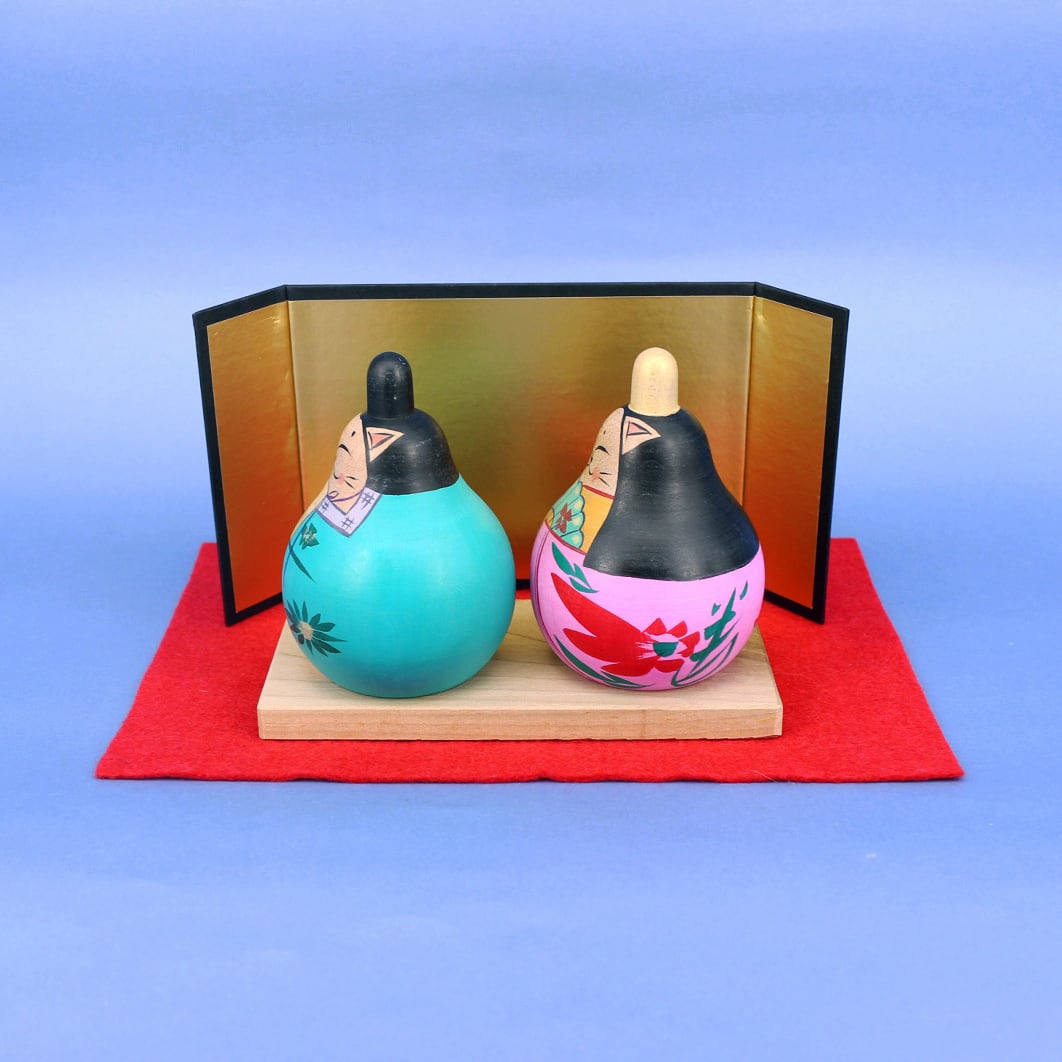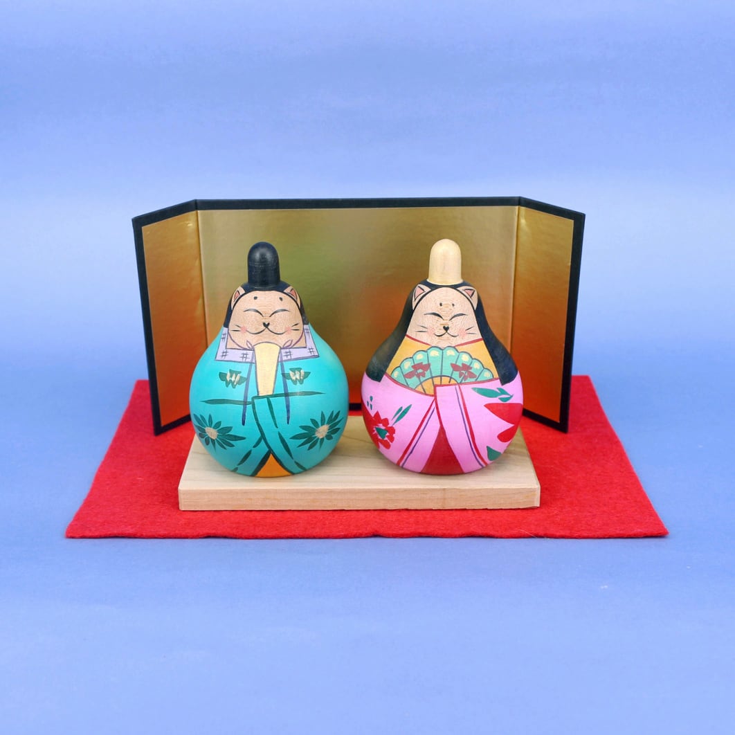 蔵王高湯系の工人、梅木直美さんの猫のおひなさまセットです。