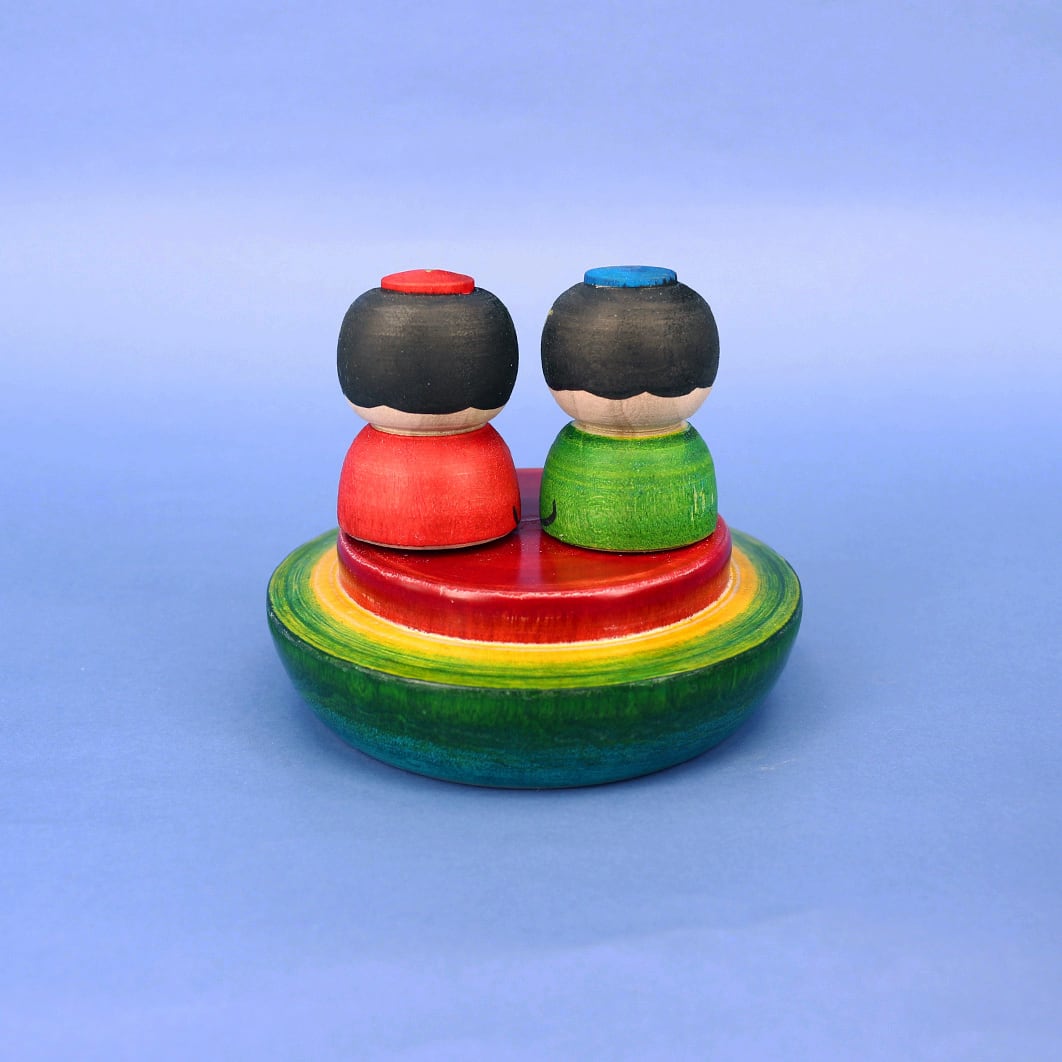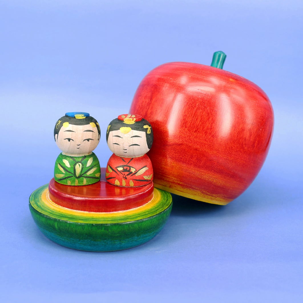 大きなリンゴをパカッと開けると、中からお内裏様とお雛様が出てきます。