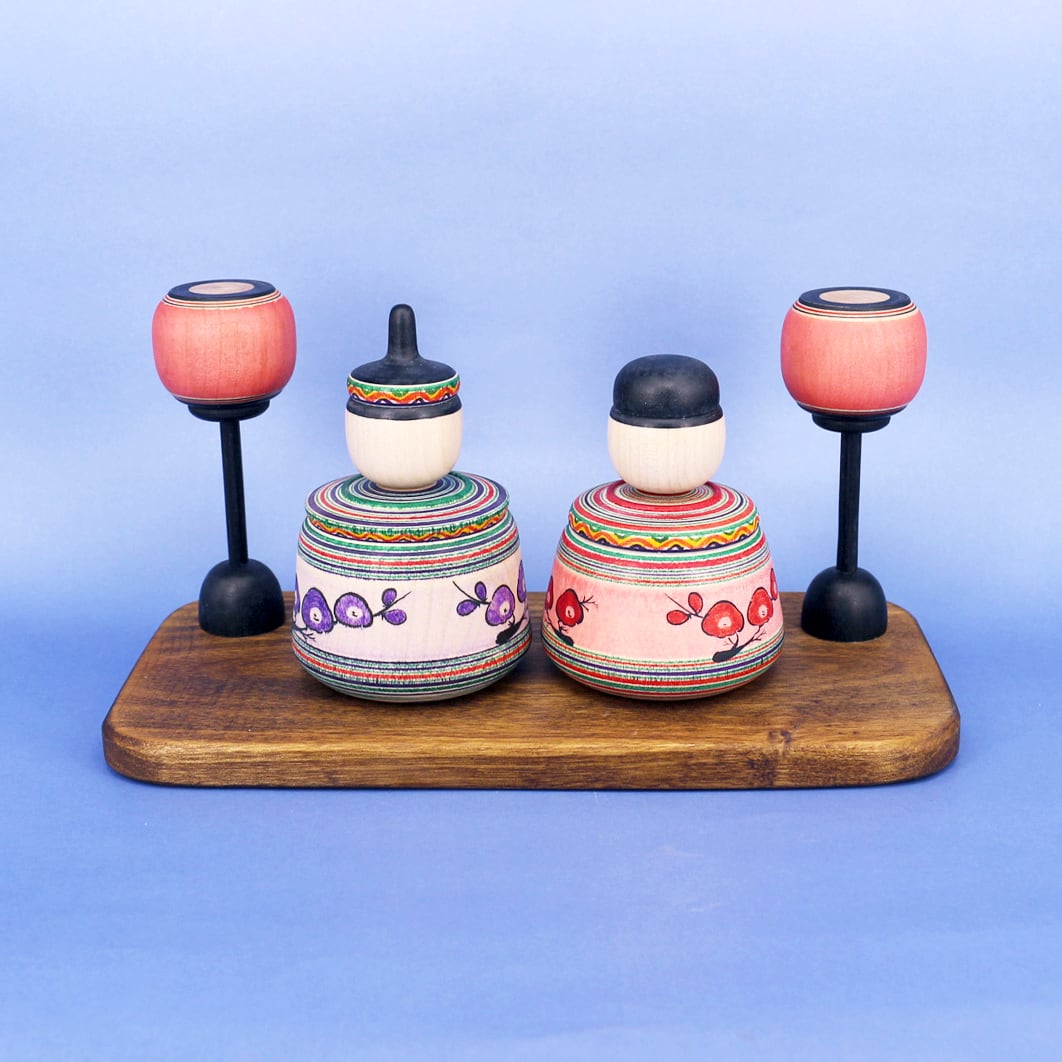 弥治郎系の工人、木地処さとう 佐藤裕介さんのおひなさまセットです。