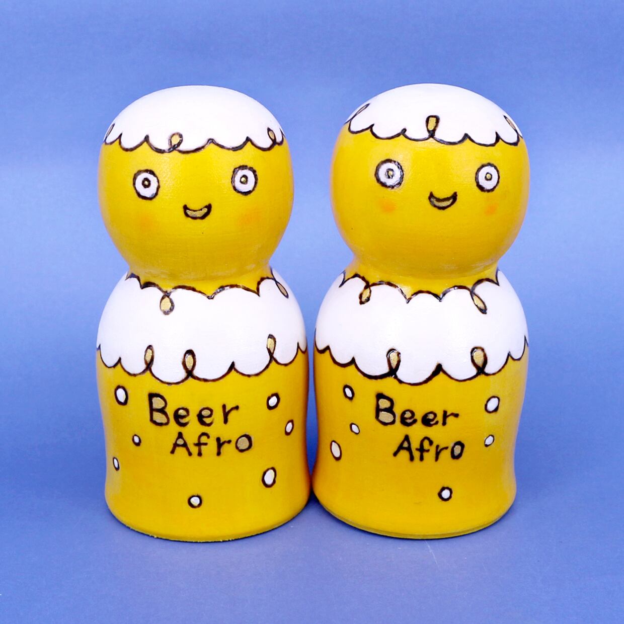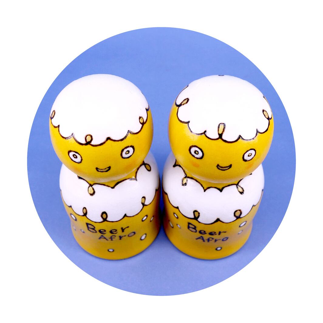 その名の通りビールの泡がアフロようになっている、ビアアフロさんのこけし。