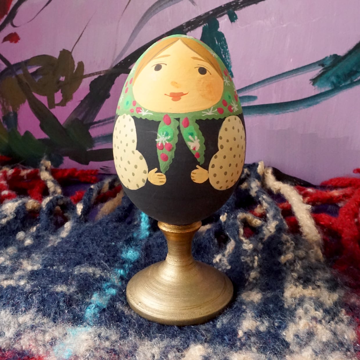 タマラ工房、タマラ・ロバノワさんの卵型の木製人形。