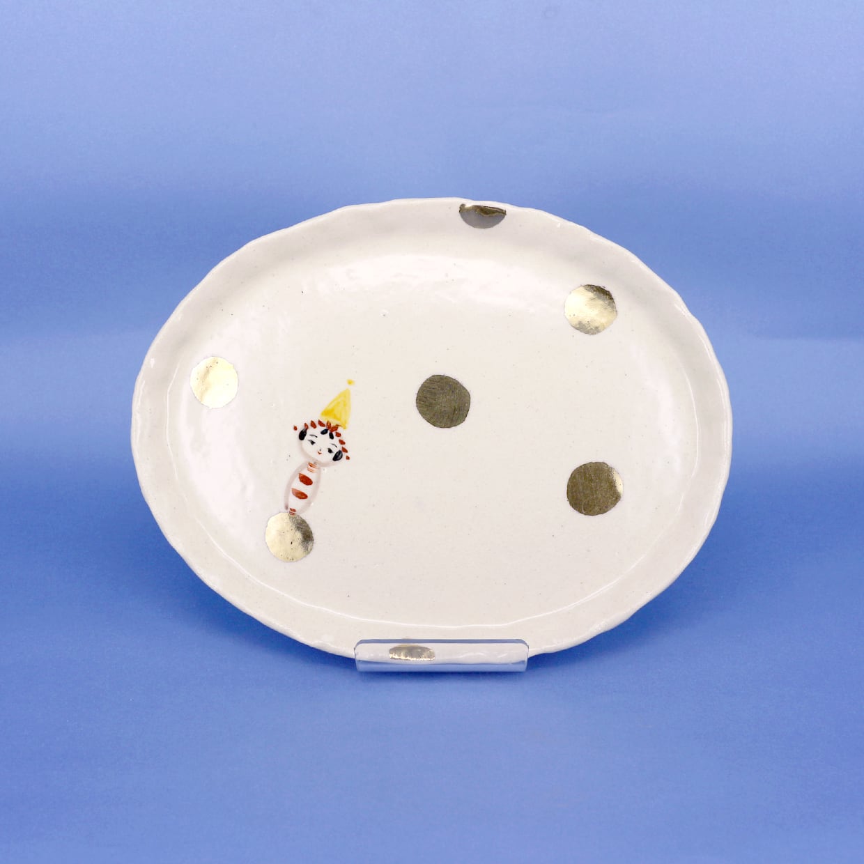《 鈴木ハツミ 》オーバル皿 こけし 金彩