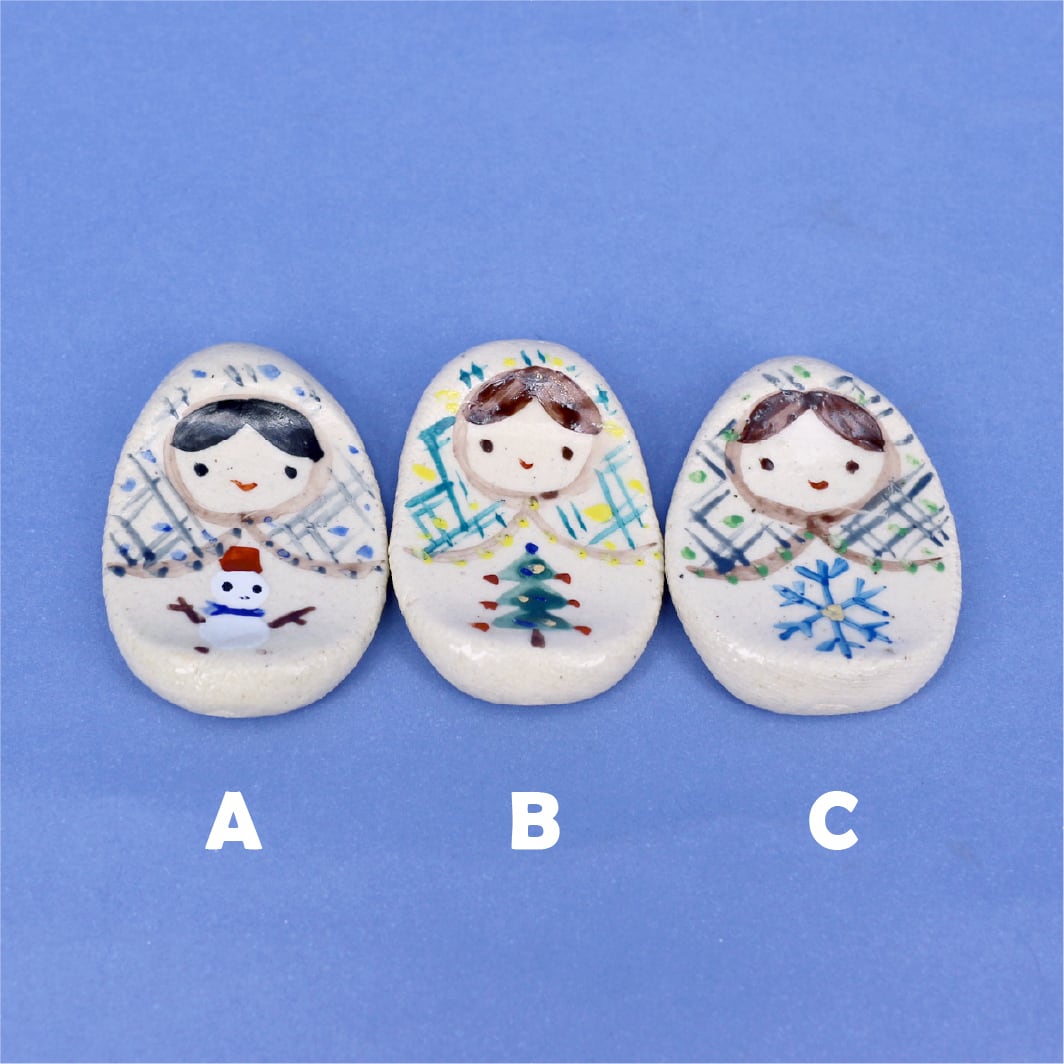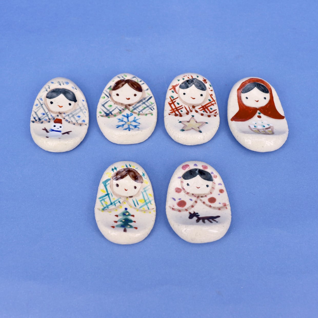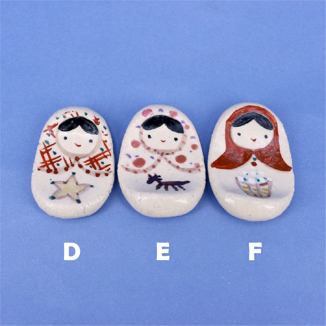 手作りのあたたかみが感じられる形をした、マトリョーシカがモチーフの箸置き。