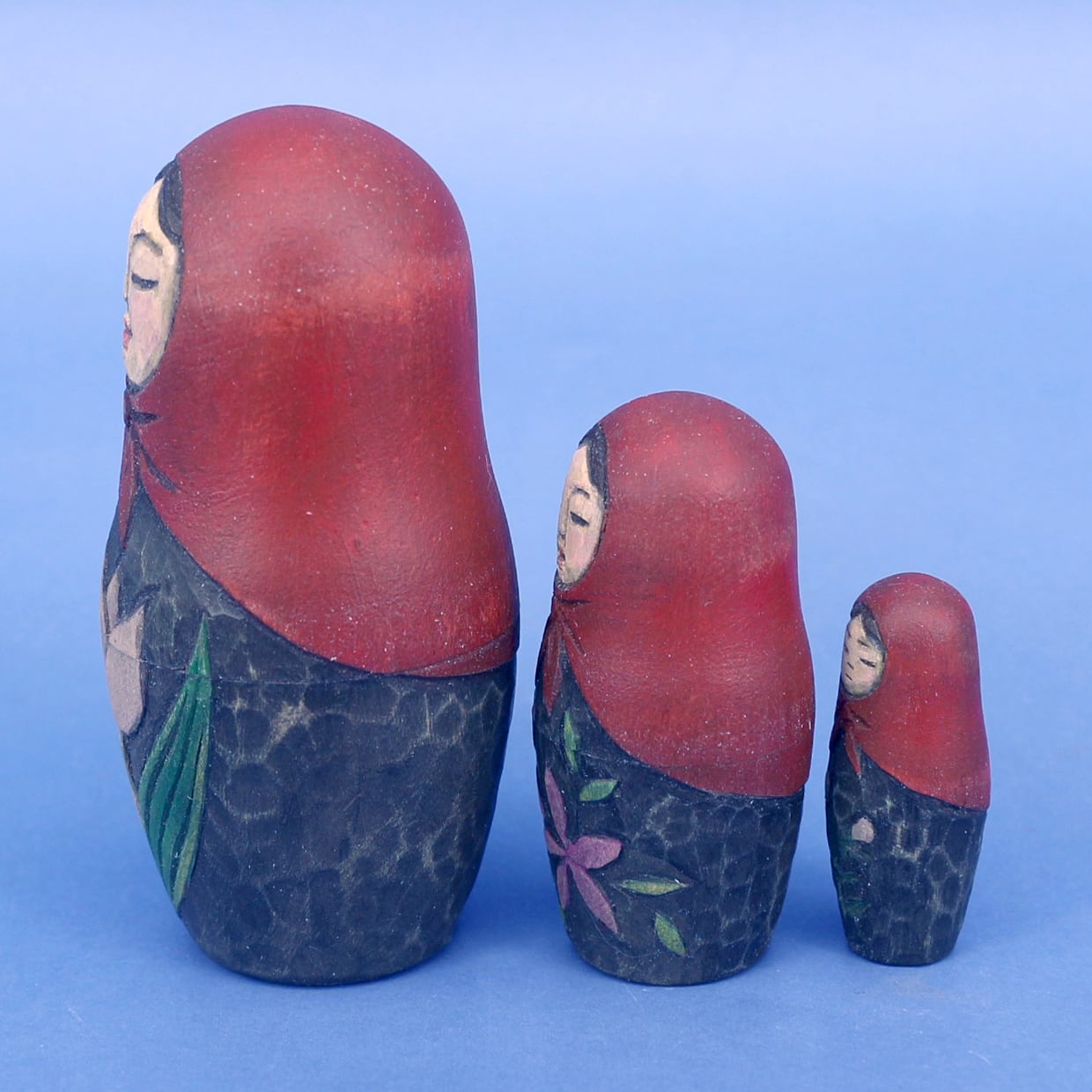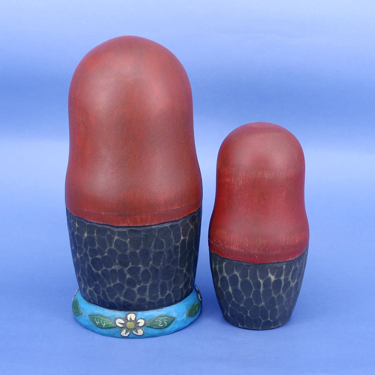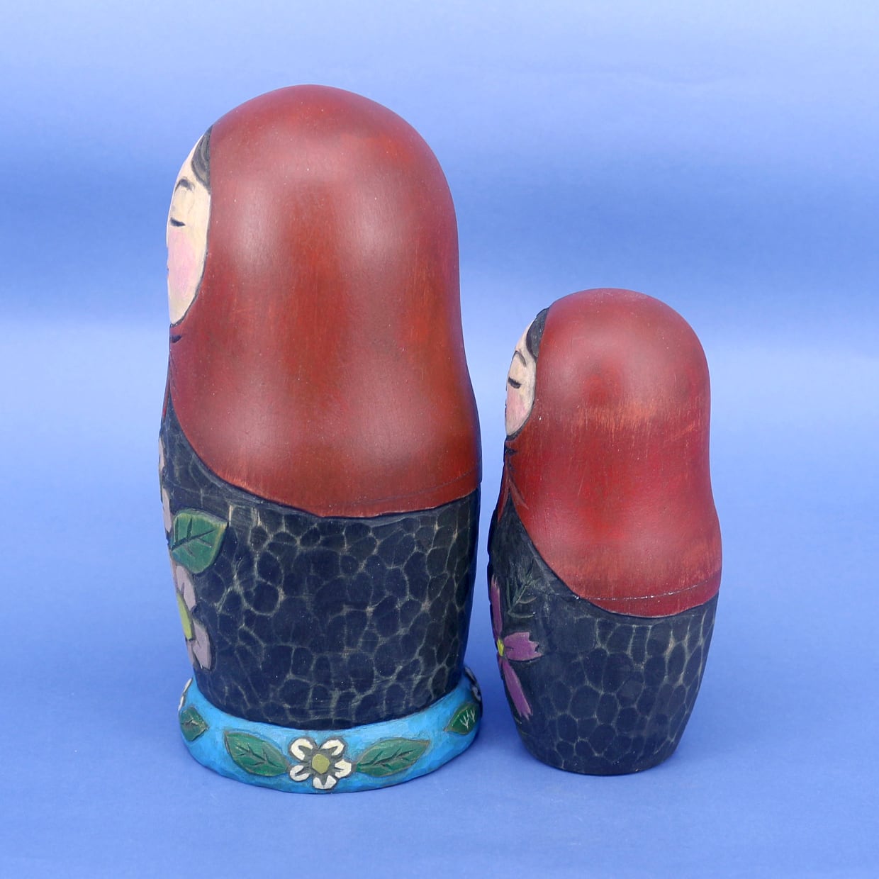 マトリョーシカは入れ子にするためにそれぞれの木地を薄く削る必要があり、そこに彫刻を施すのは実はとても難しい技術です。
