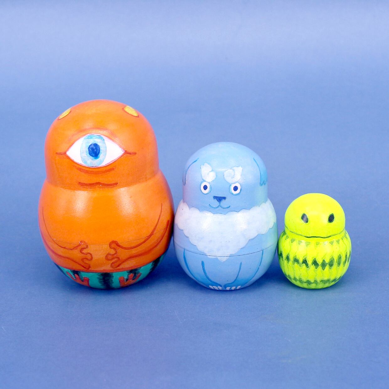 様々な種類の化物や妖怪をモチーフしたマトリョーシカ。