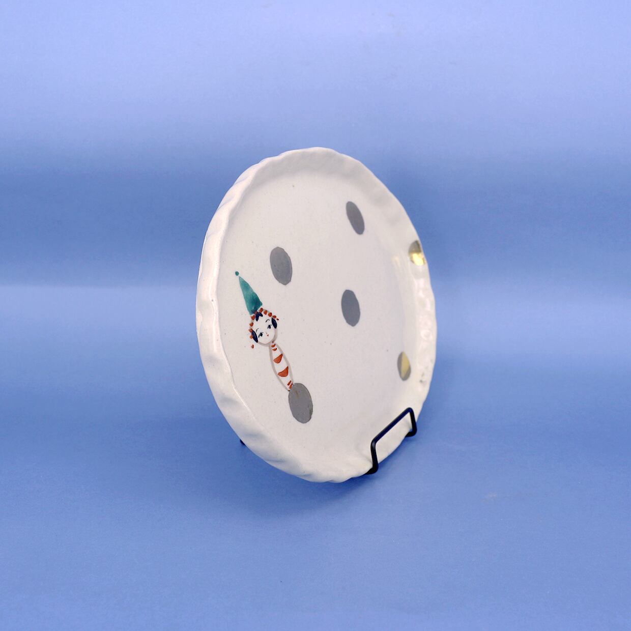 まるで水玉に乗っているようなとんがり帽子のこけしは、見ているこちらも明るく優しい気持ちにしてくれます。