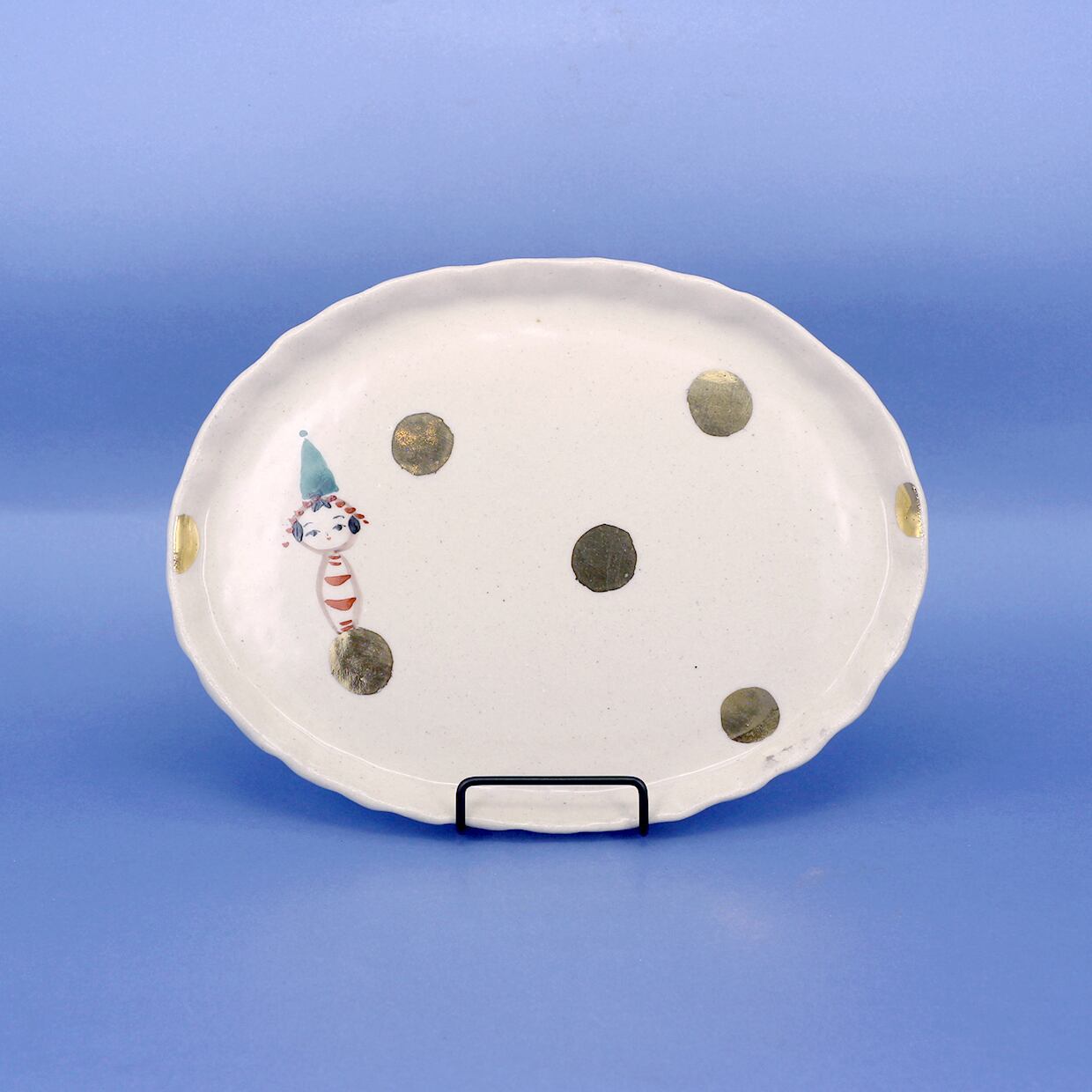《 鈴木ハツミ 》オーバル皿 こけし 金彩