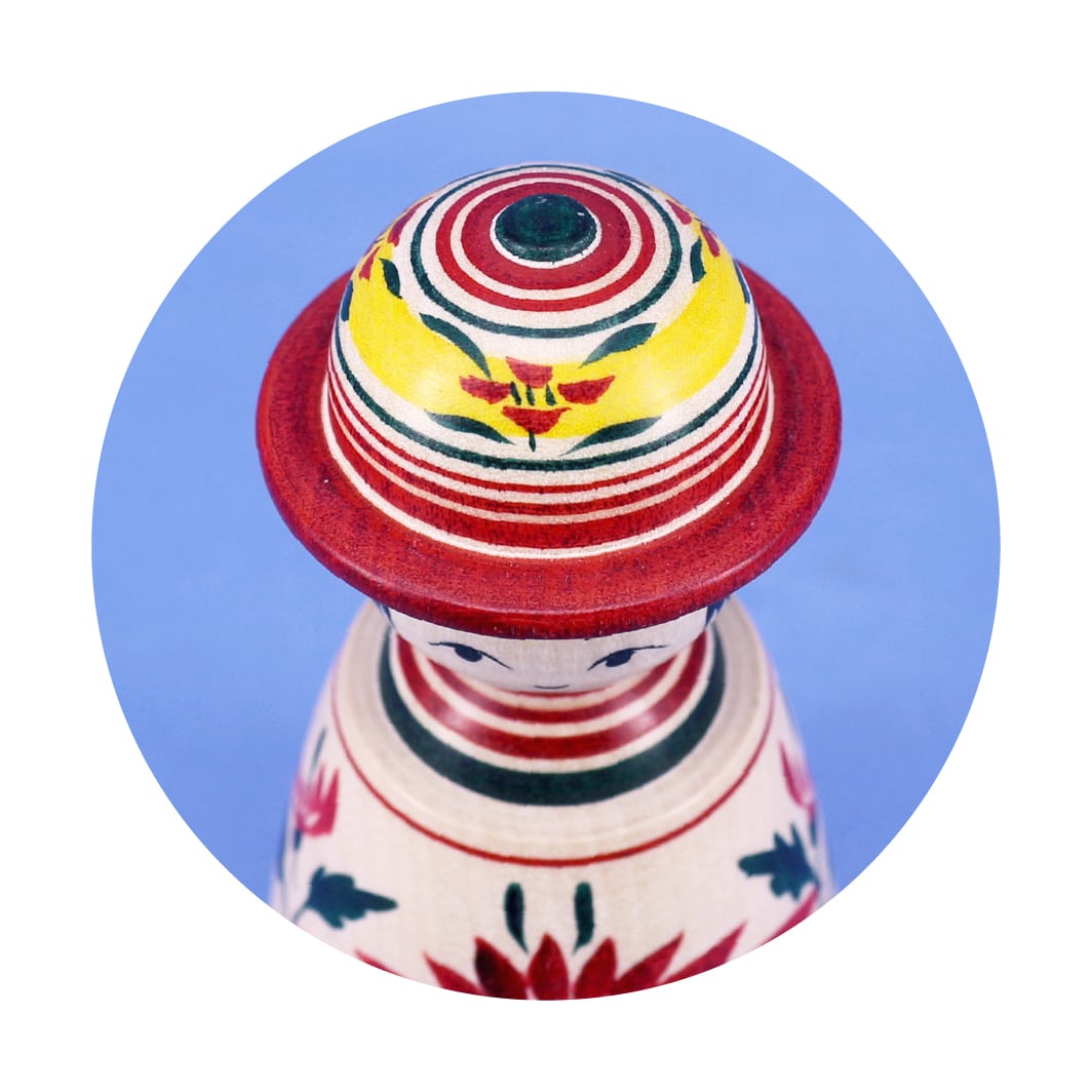 《 鳴子系・吉田勝範 工人 》丸型帽子こけし