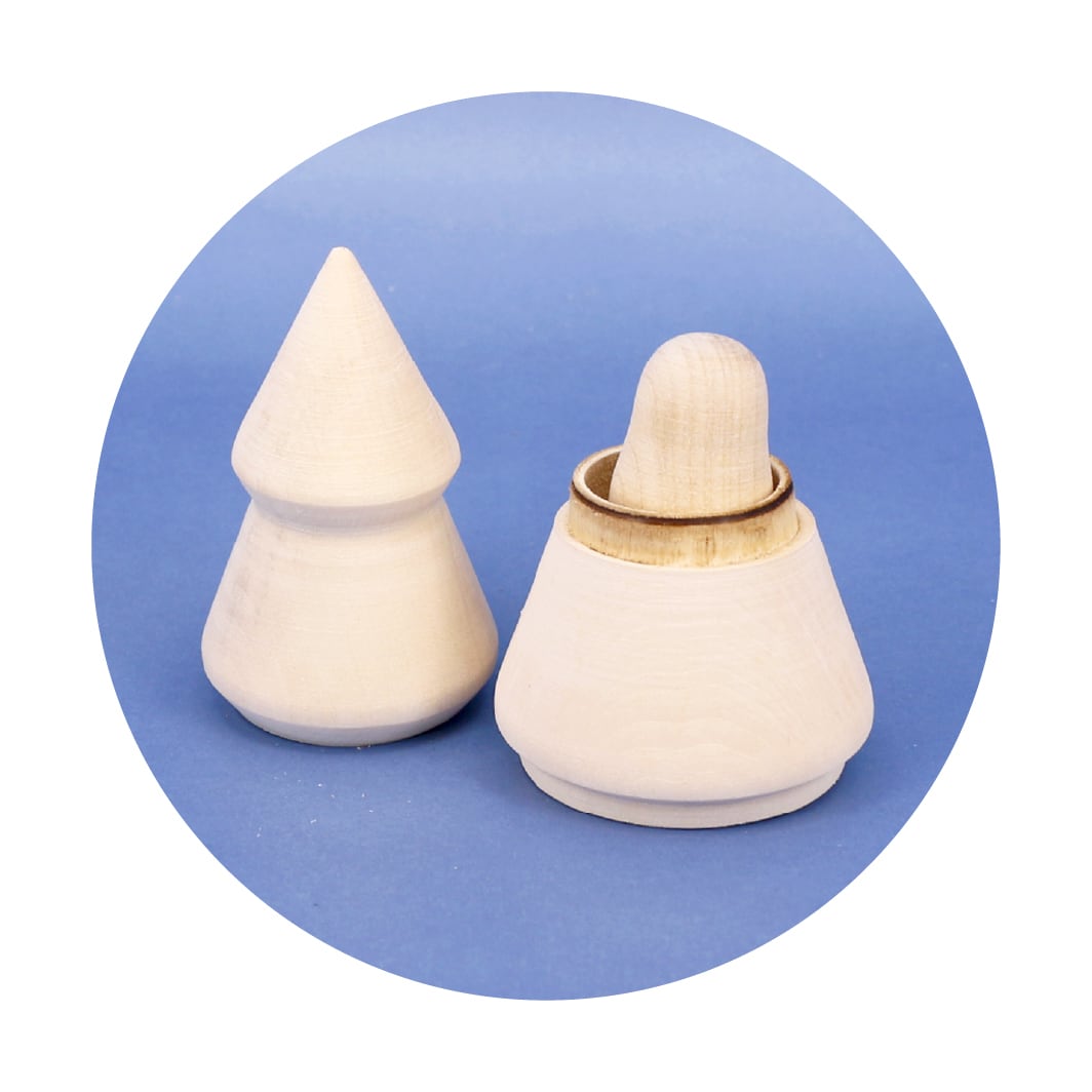 オリジナルのクリスマスモチーフのマトリョーシカにしたり、森や木をテーマにした作品にしたりと、アイディア次第で工夫しがいのある形です。