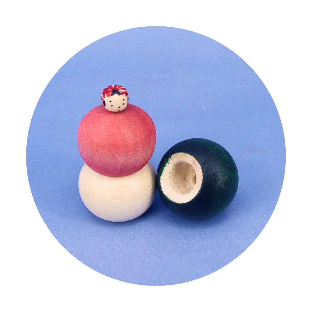 3つのえじこを重ねて、お団子のように積むことができる仕様になっています。