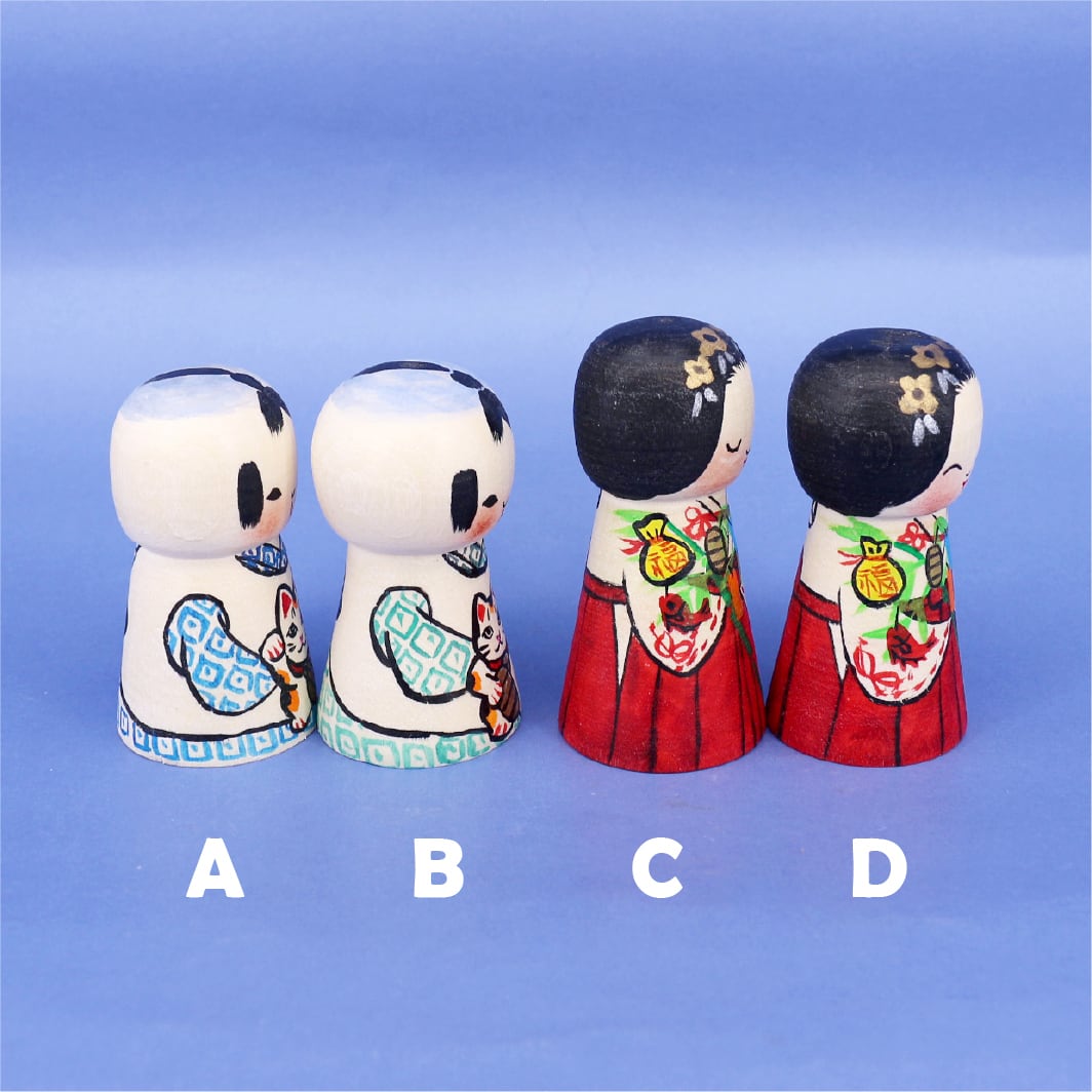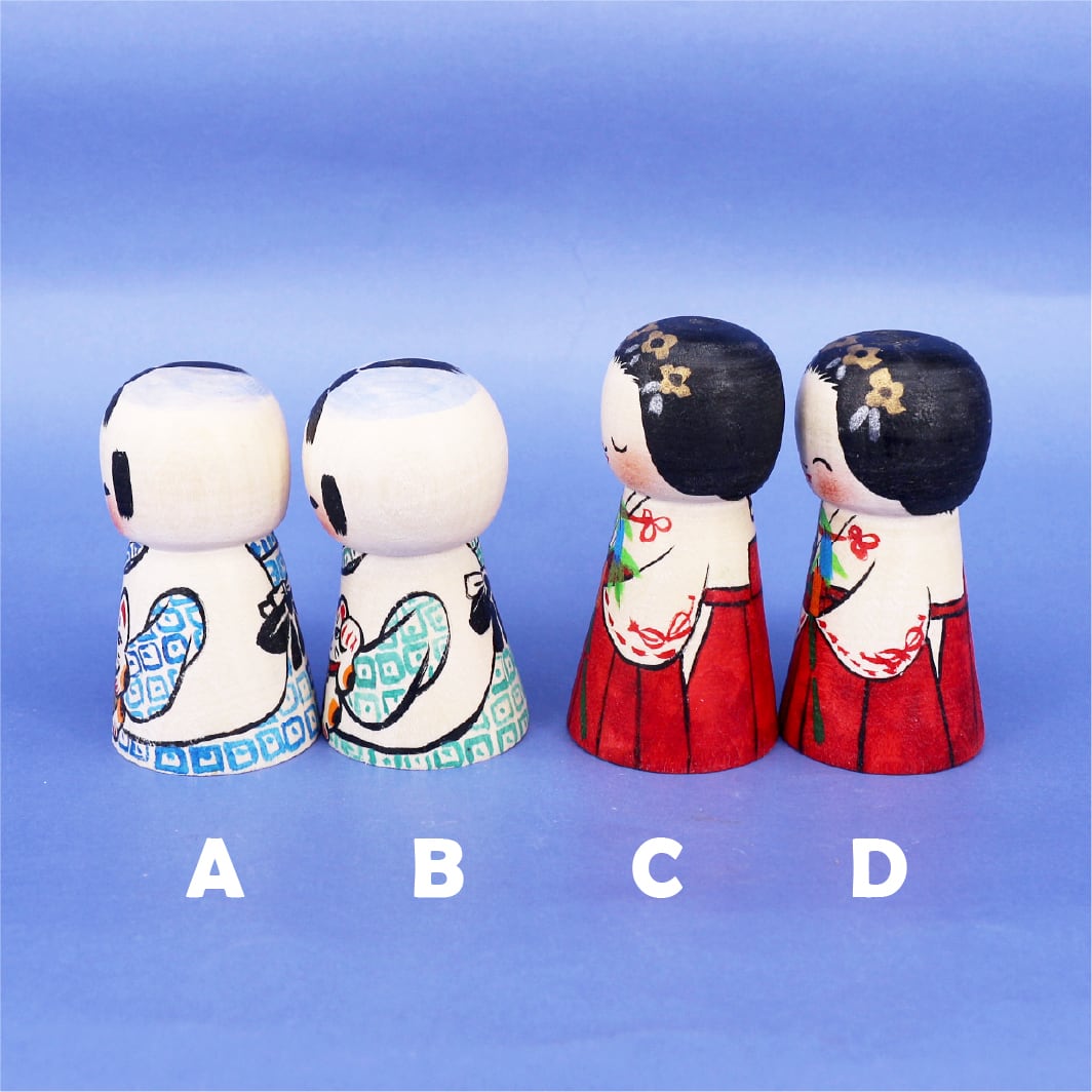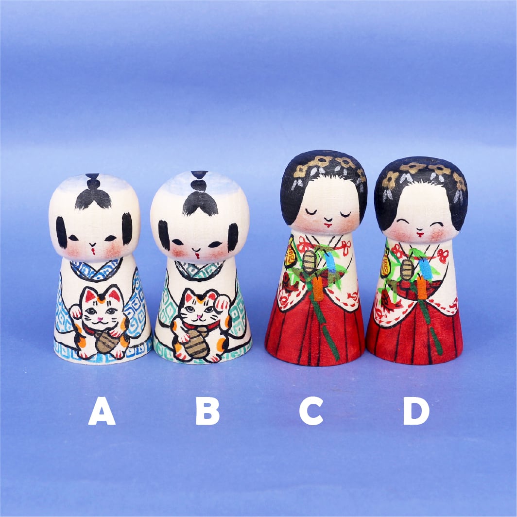 ■サイズ 高さ 坊: 約75mm/巫女:約85mm