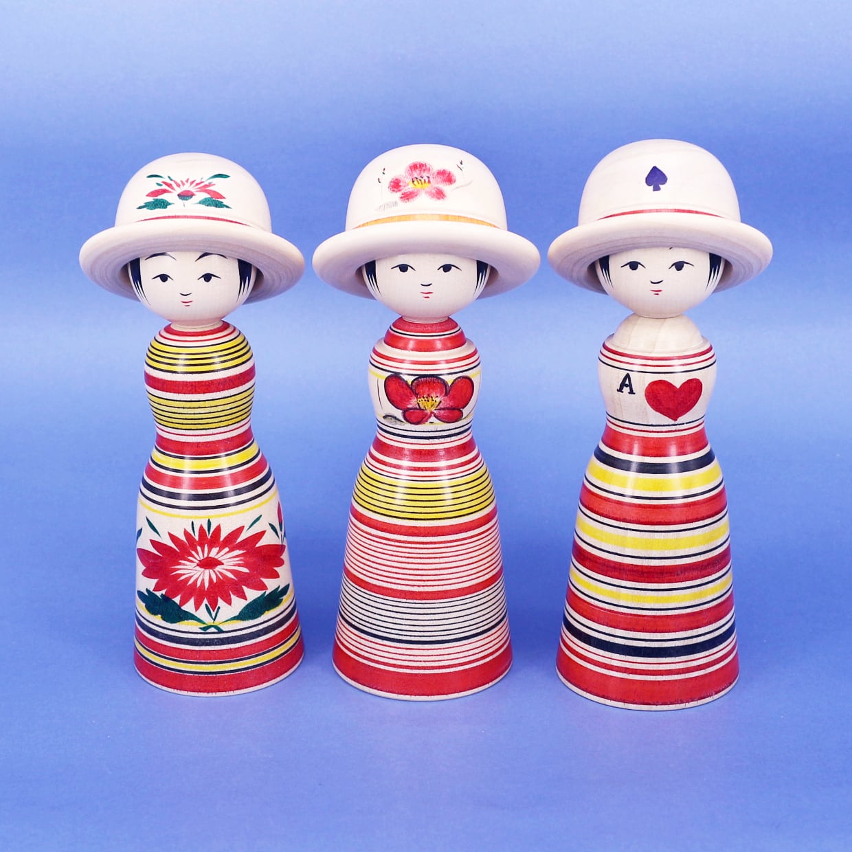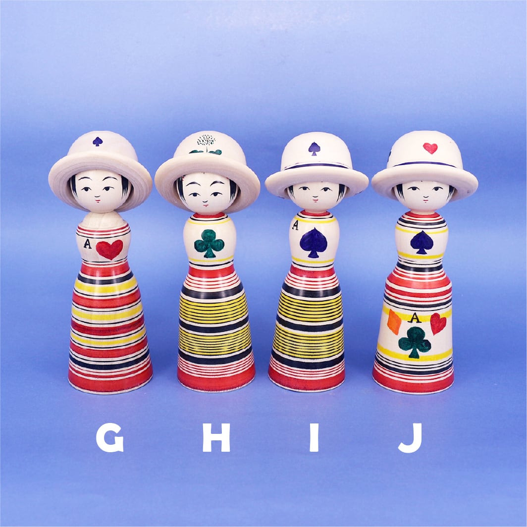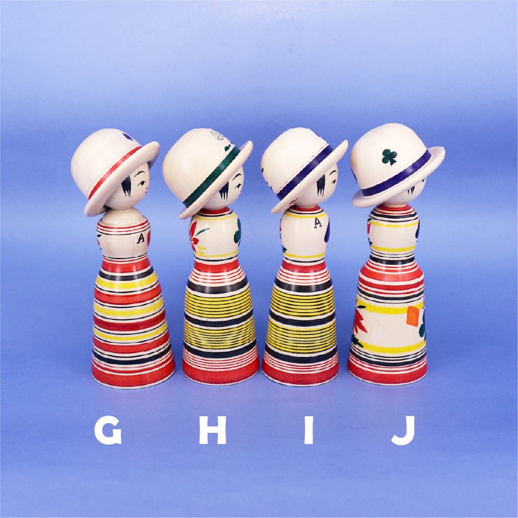 胴体と帽子の両面にそれぞれ異なる柄が描かれているので、首を回してお好きな柄の方をお顔にして飾ることができます。