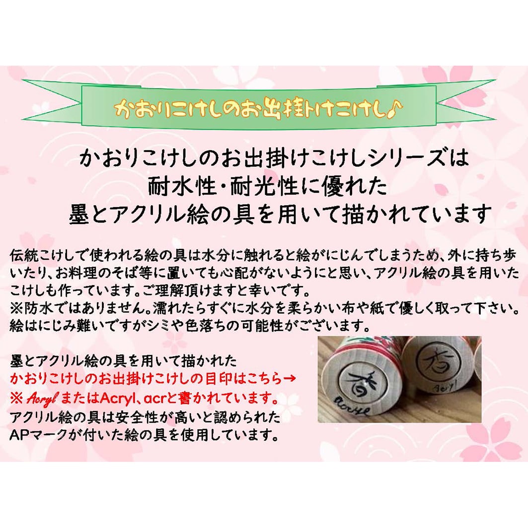 鳴子系の工人、かおりこけし 田邉香さんのお出掛けこけしです。