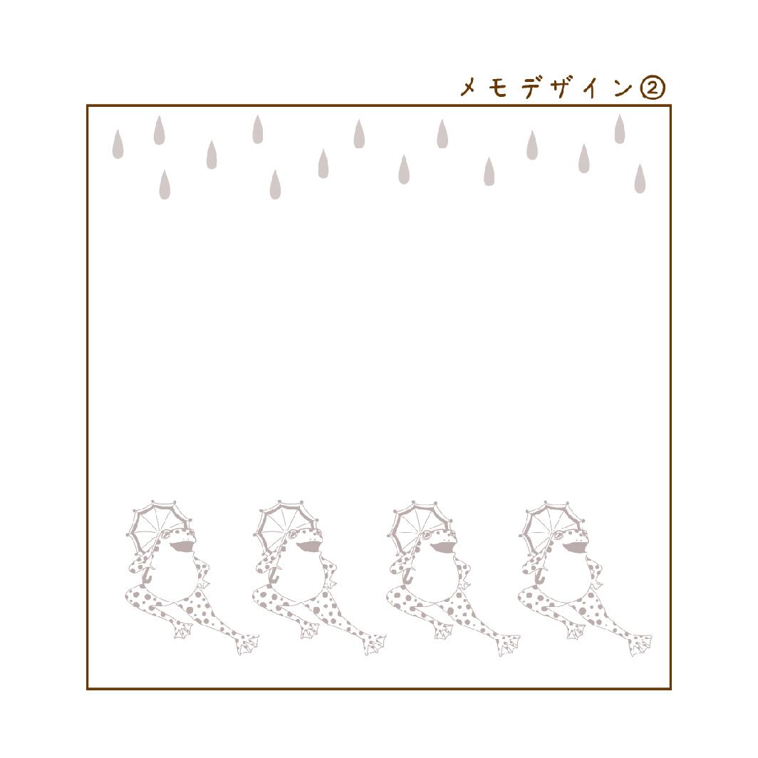 雨の中、歌うカエルたちが楽しそうなデザインになっています。