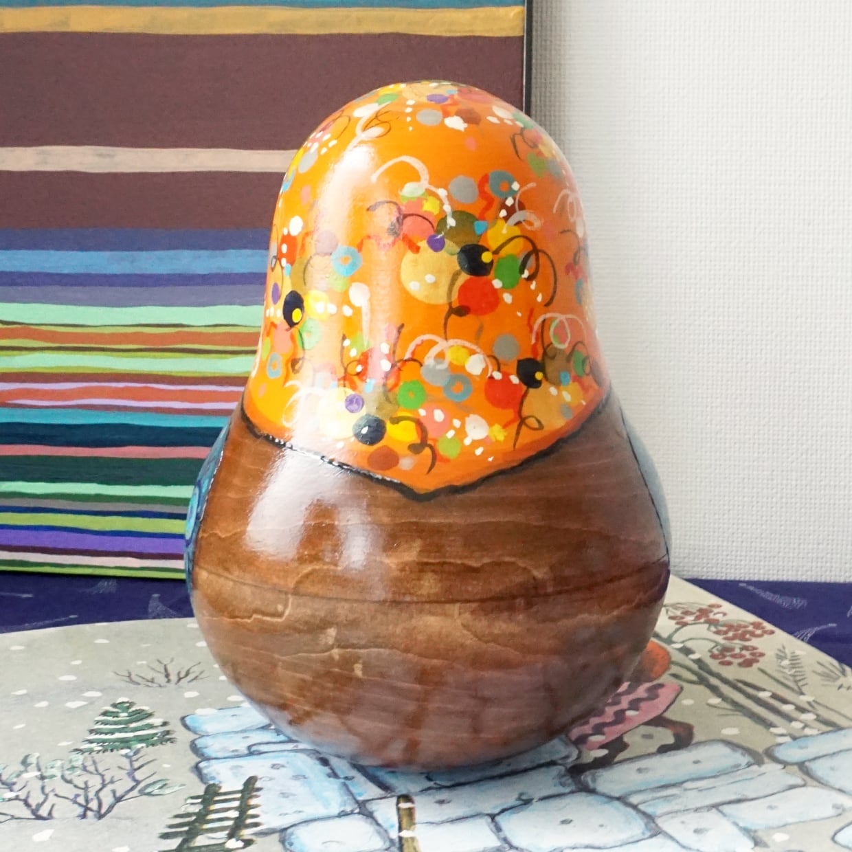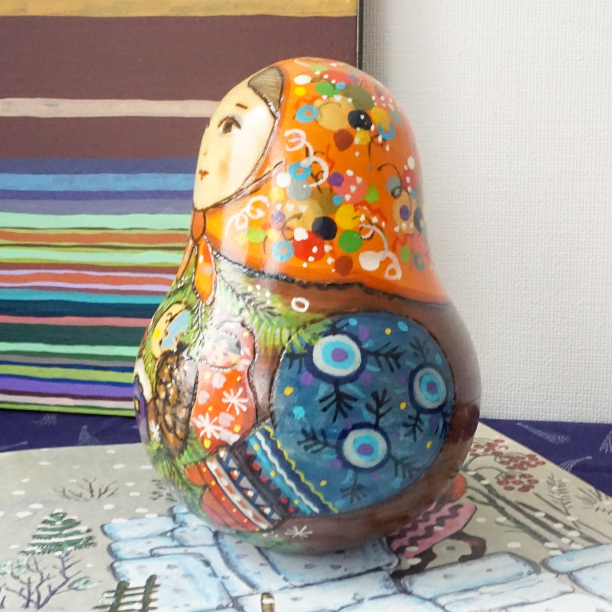 ウッドバーニングとあたたかみのある彩色で、アーニャさんならではの優しい雰囲気たっぷりの作品に仕上がっています。