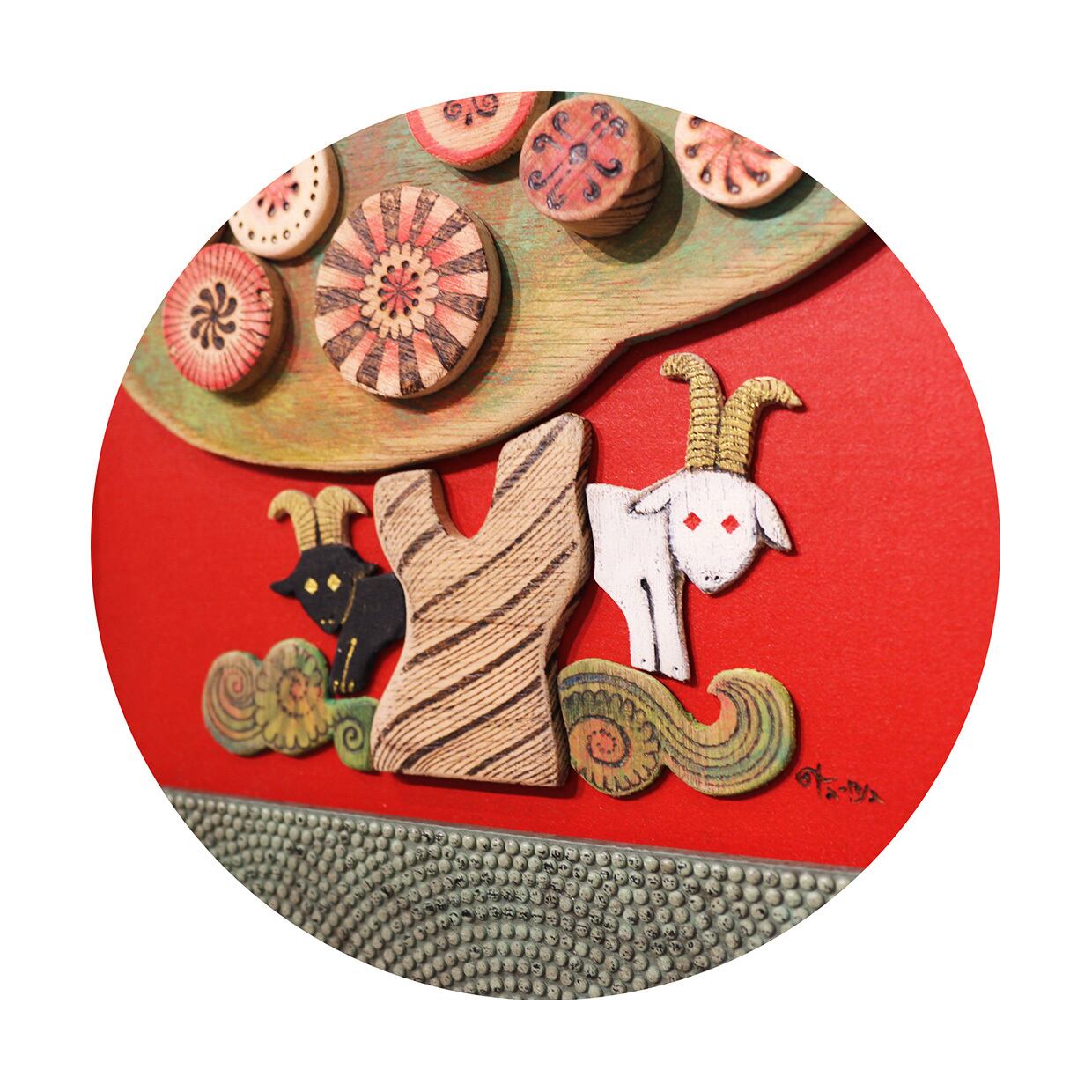 《 ta-nya 》額絵「赤の木 〜双子のヤギ〜」