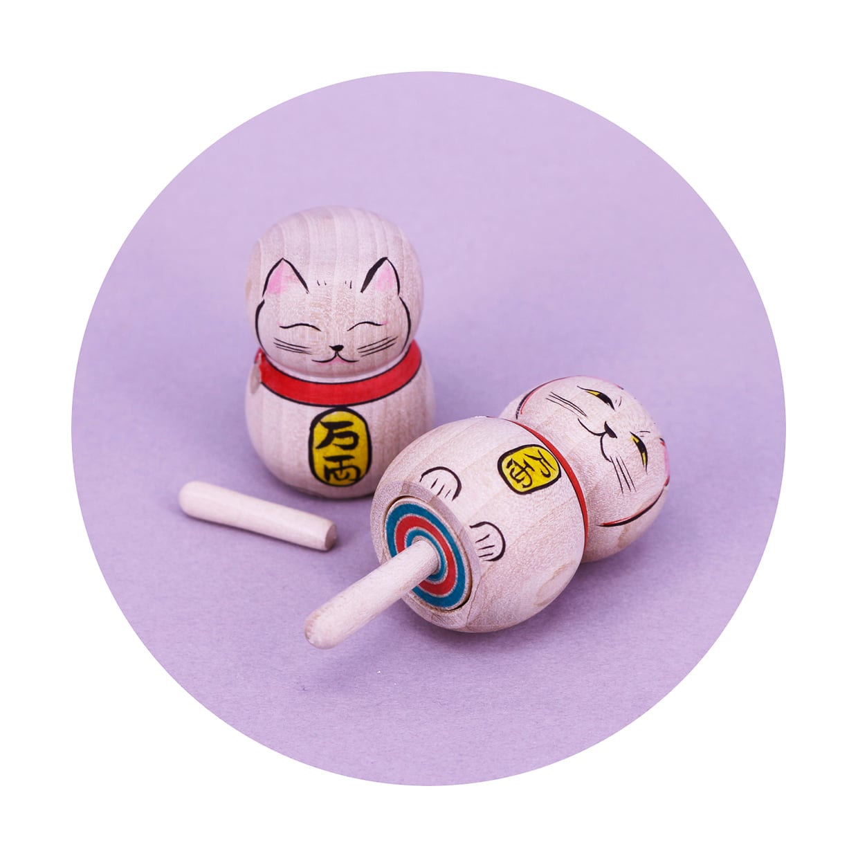 猫の手を外し、底の穴に挿すことで独楽(こま)になります。