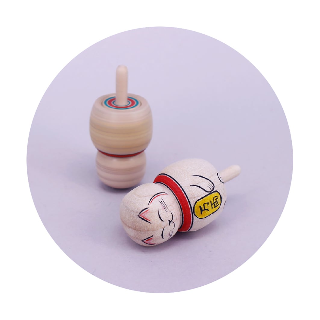 《 江戸独楽・前田良二 工人 》招き猫 独楽(こま)