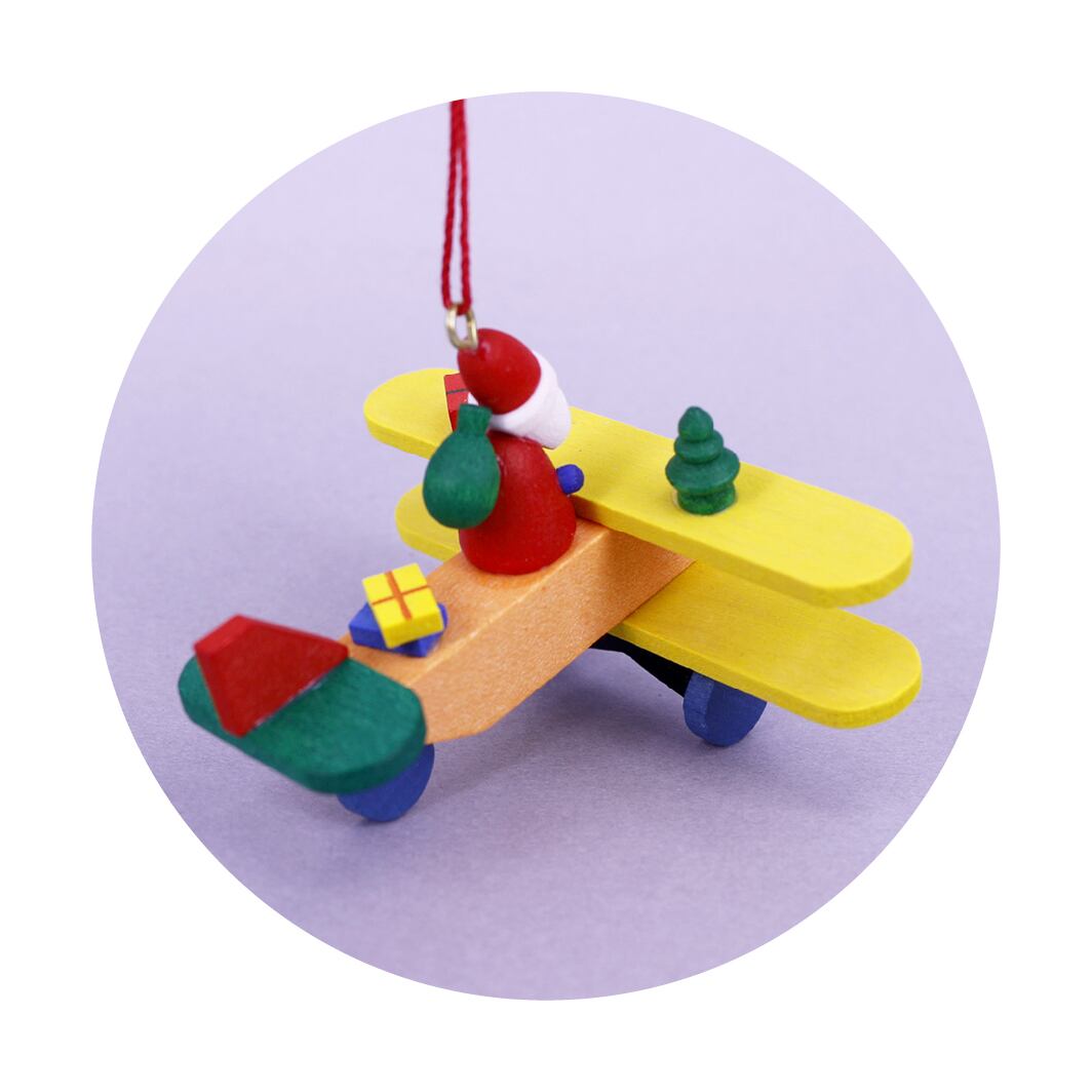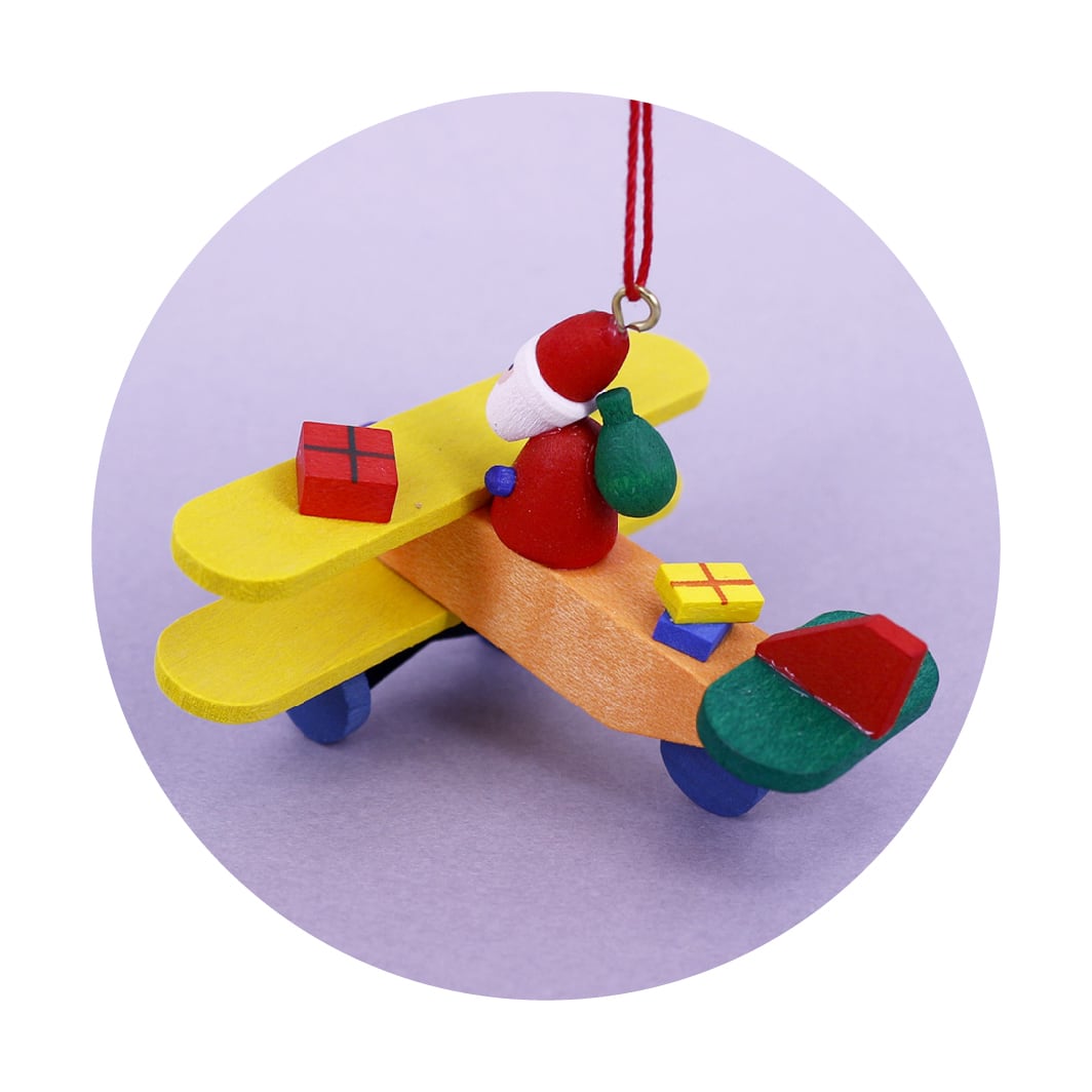 飛行機に乗り、プレゼントをお届けするサンタさんがユニークな作品です。