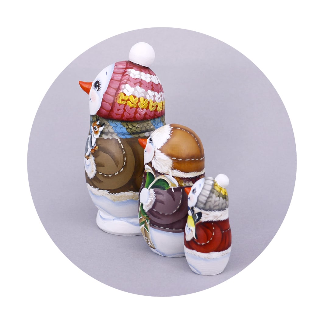 スベトラーナ・ニコライバ作 マトリョーシカ 3個型 雪だるま