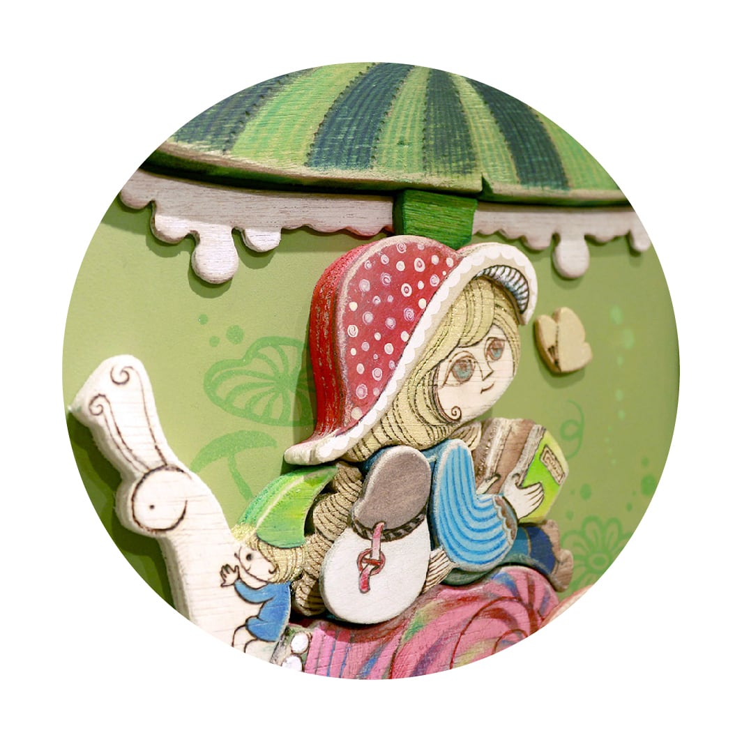 「ふしぎの森の遊園地」をテーマに、メリーゴーランドをモチーフにした作品です。