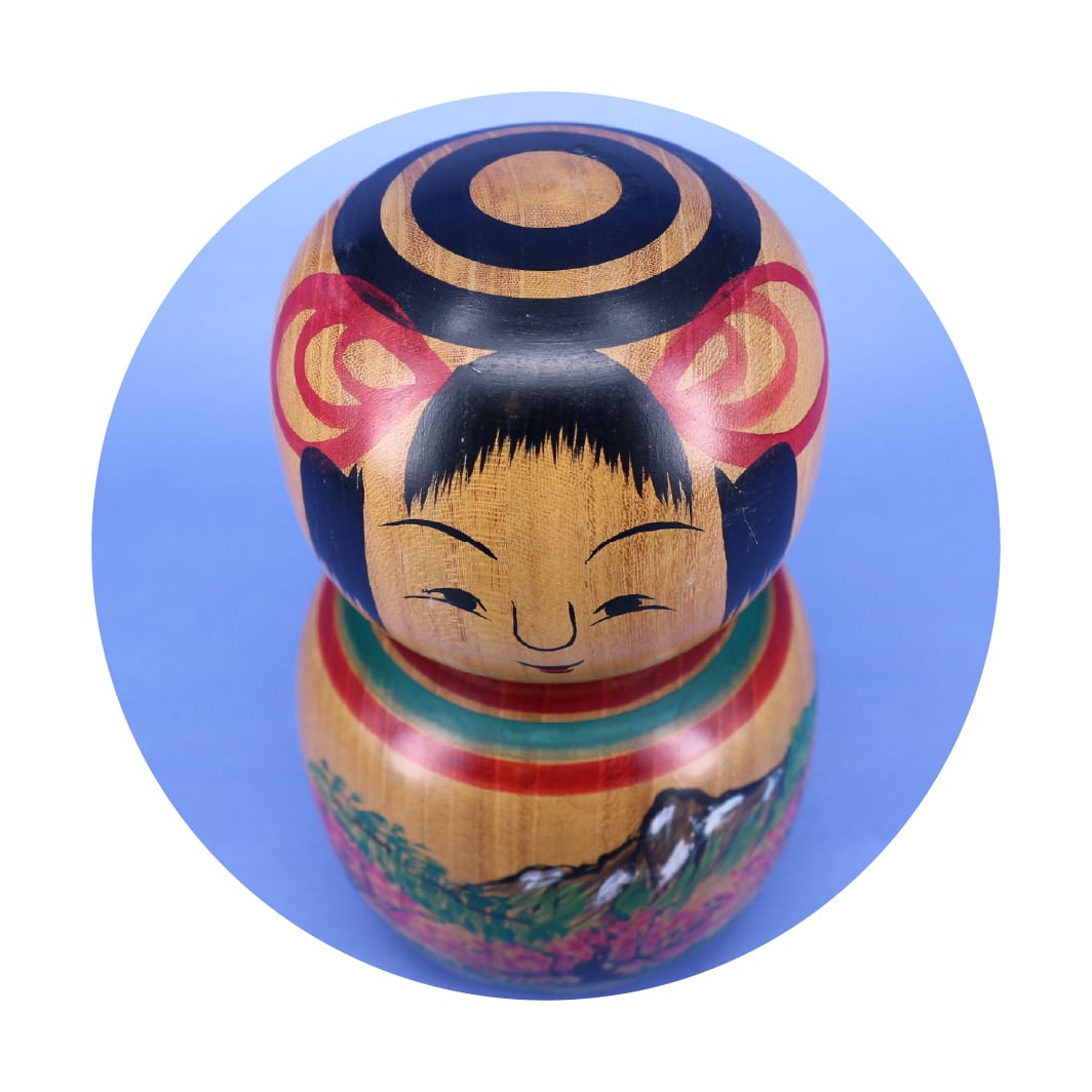 平らな頭が特徴のつぶしこけしは、特徴のある表情に惹きつけられます。