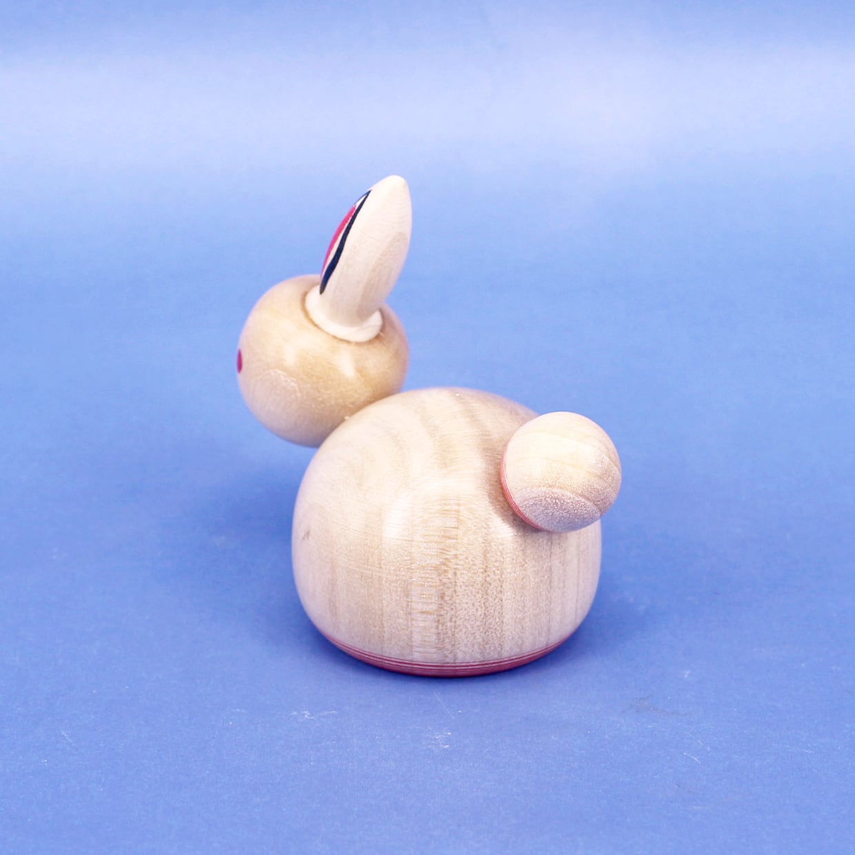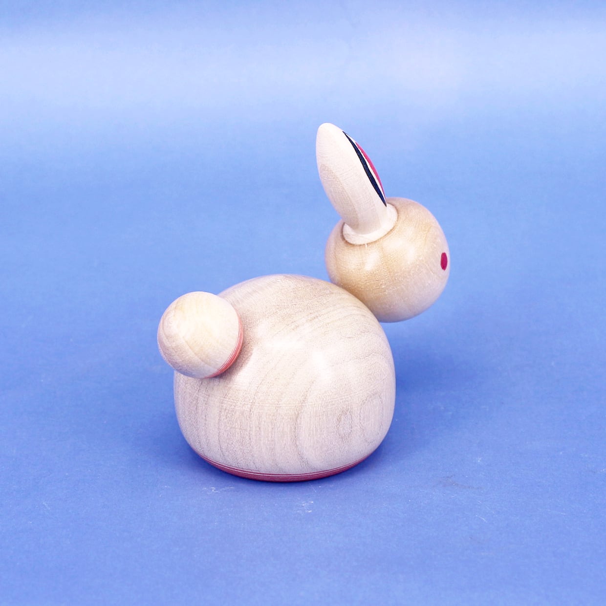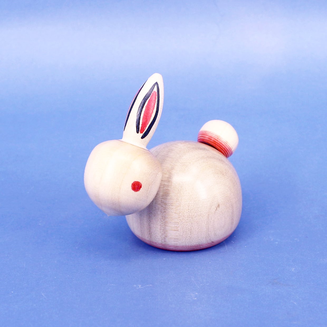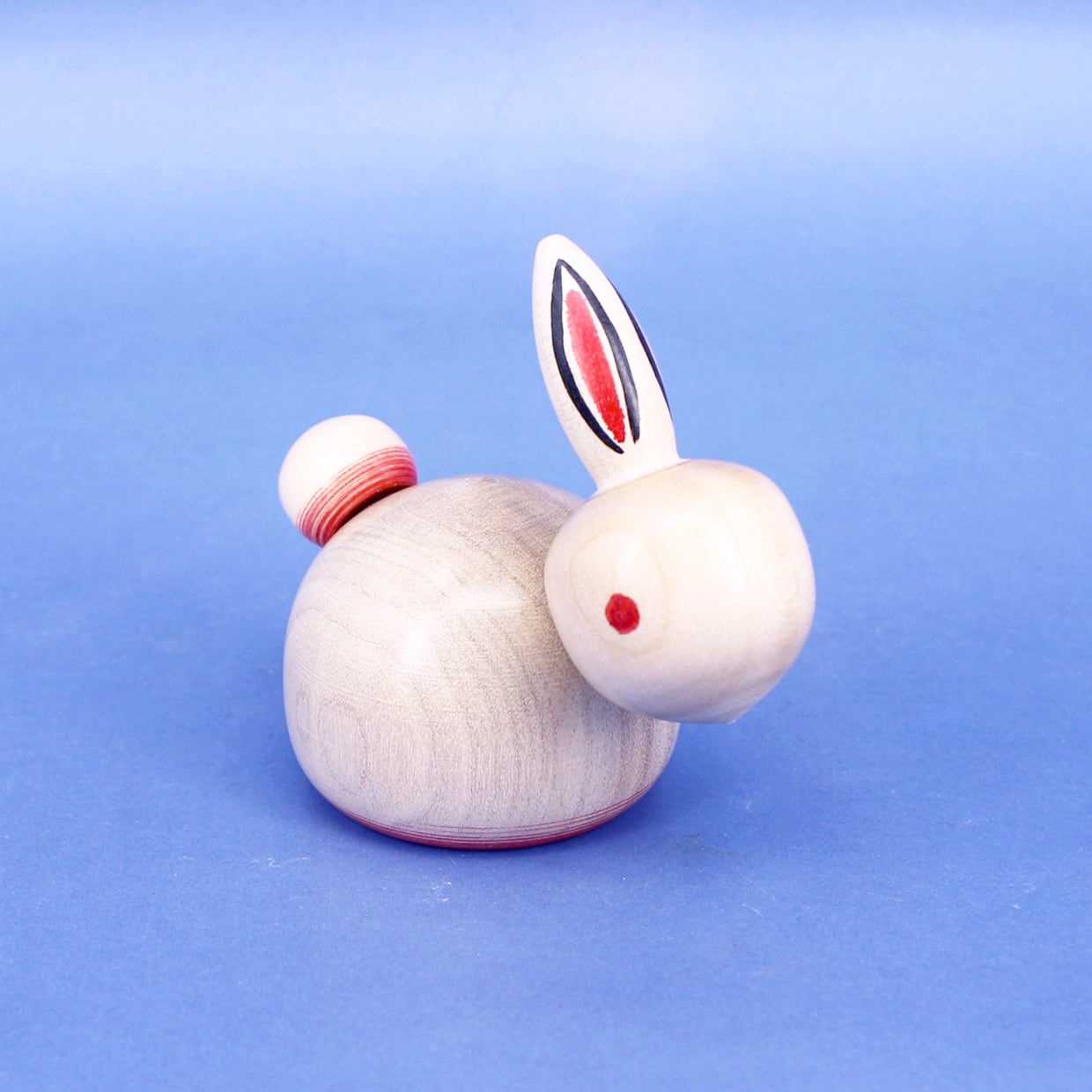 うさぎの顔、胴体、しっぽがそれぞれ独楽(こま)になっています。