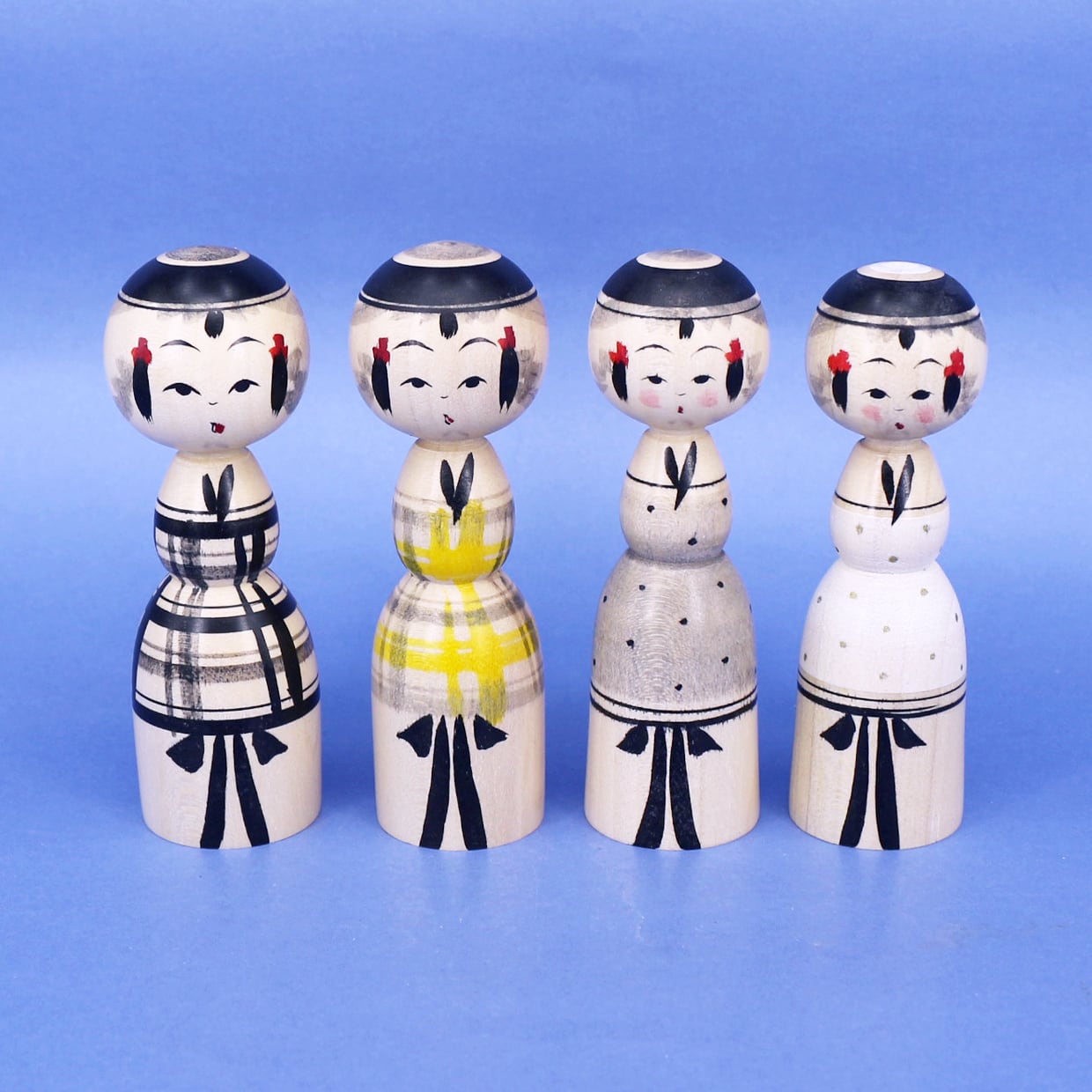 伝統柄からチェックやドット柄まで描かれる池内工人の作品は、揃えて並べても飾りやすいサイズになっています。