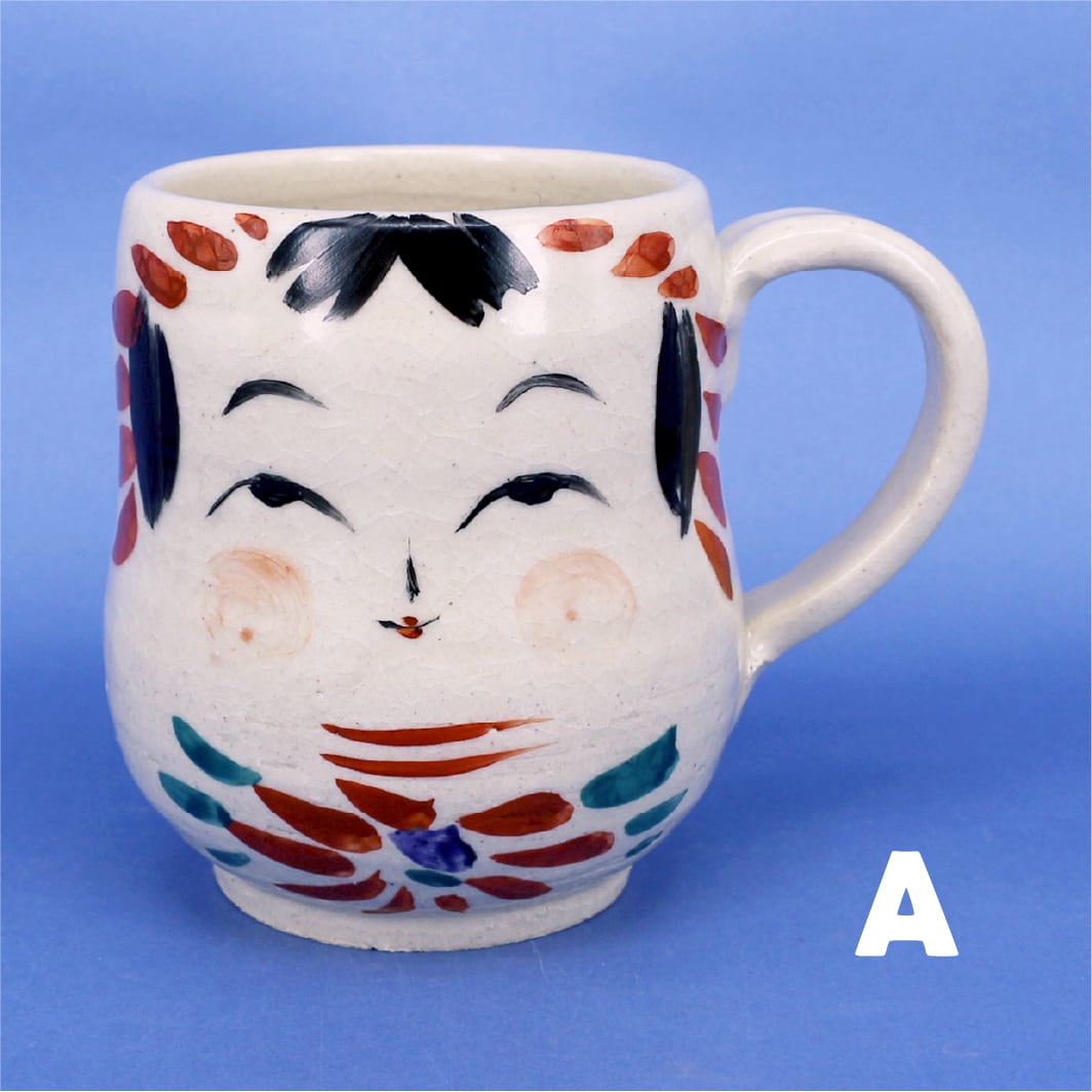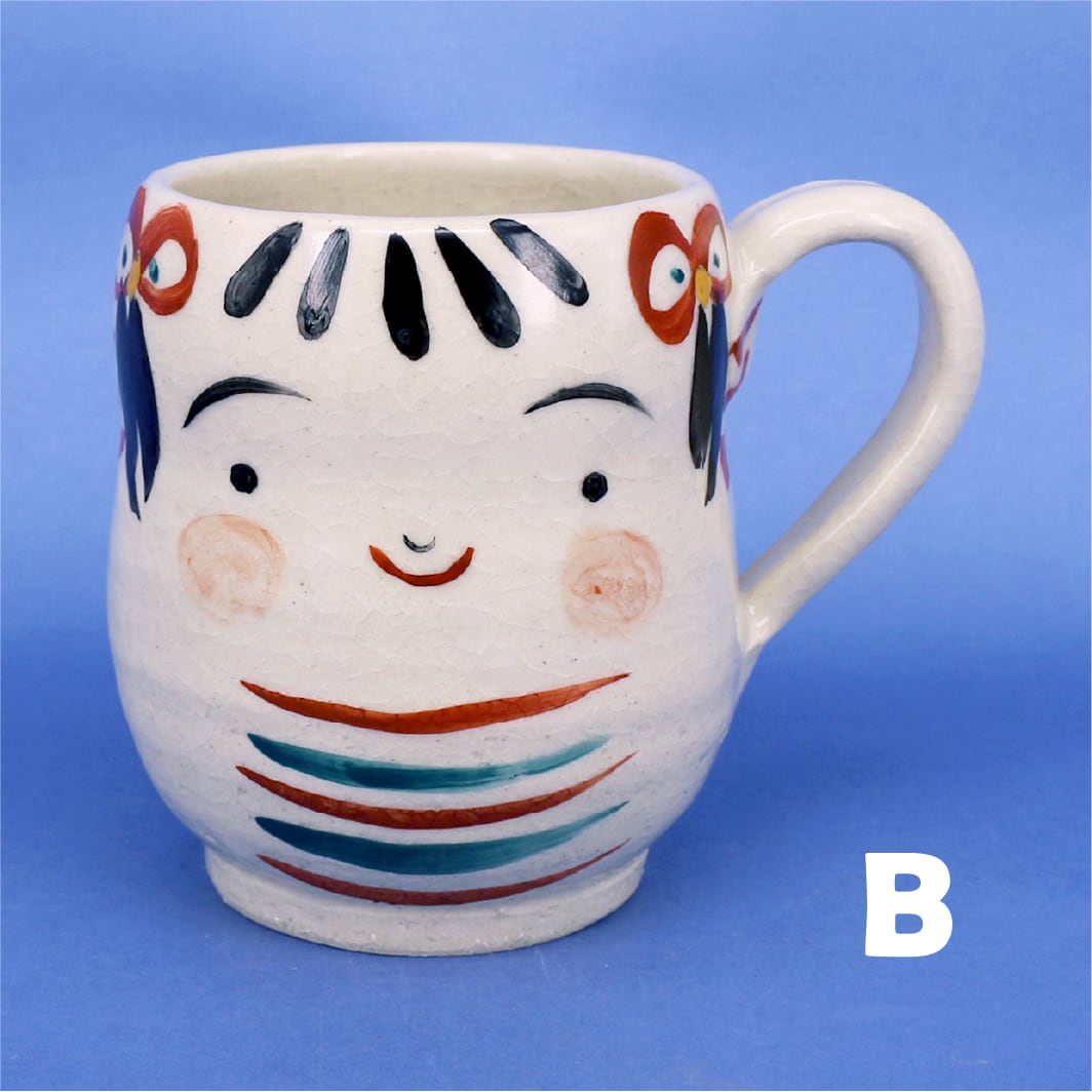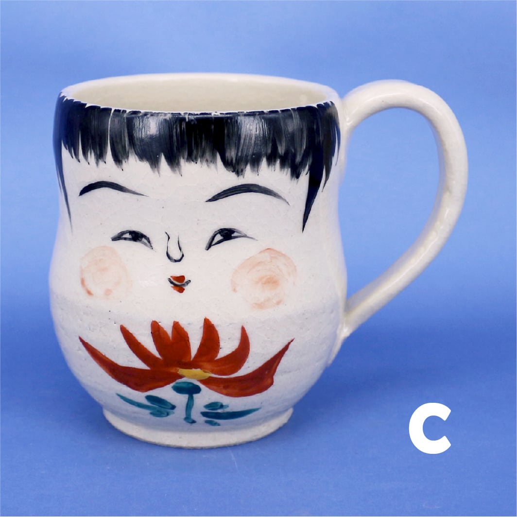 コロンとした形の、こけしをモチーフにした手付きカップ。