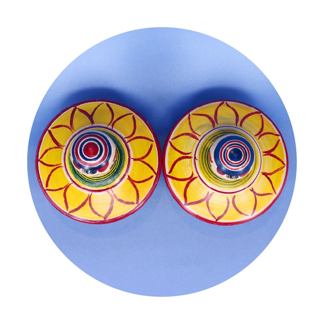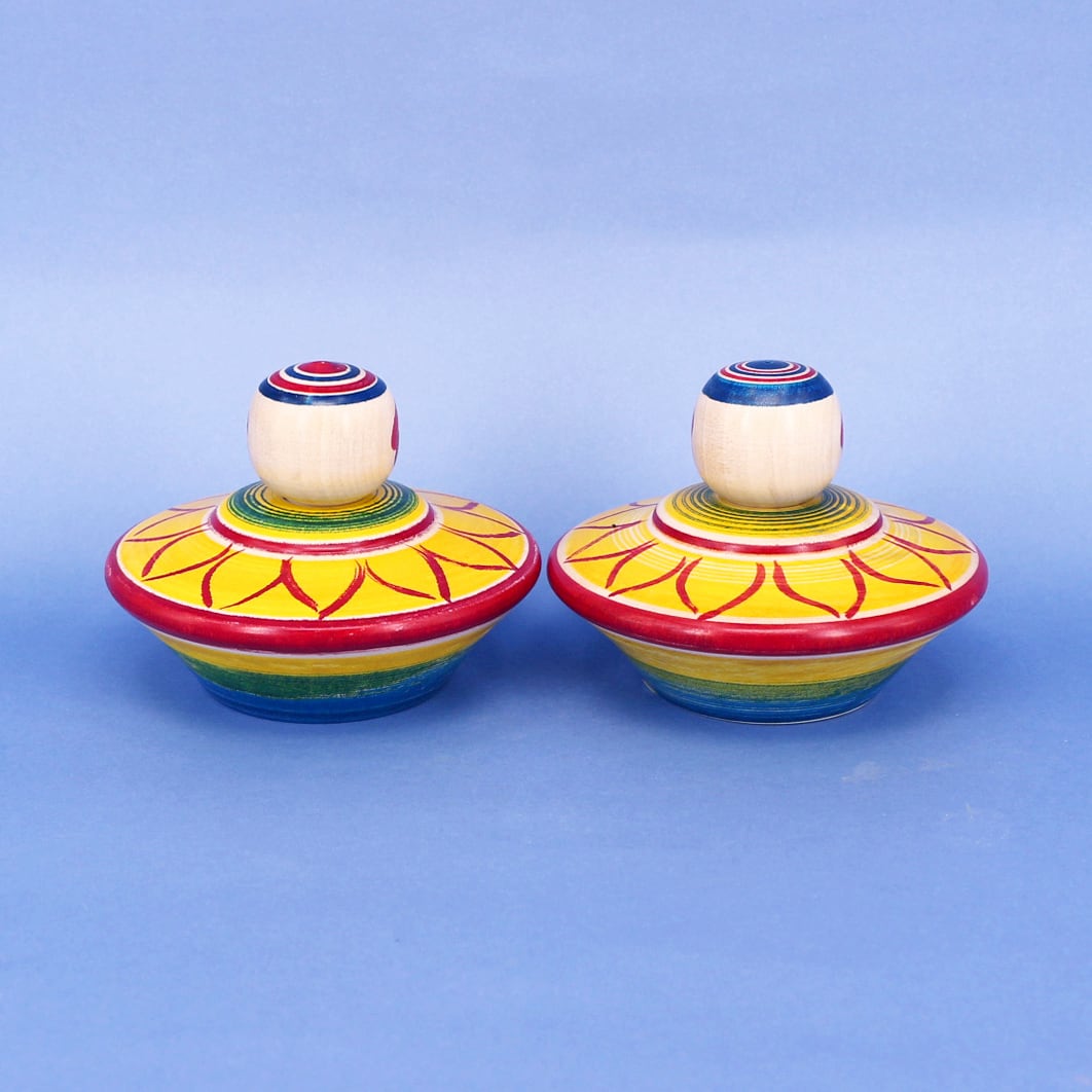 まあるいお花の中から、カラフルで小さなこけしが出てきます。